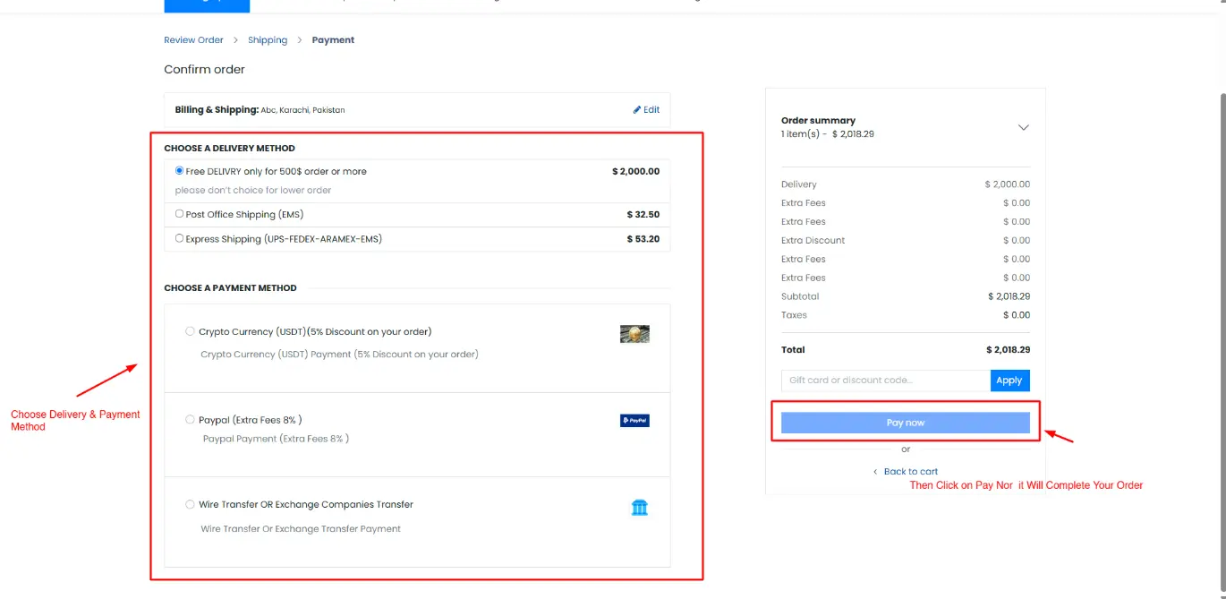 · Choose a delivery method. For domestic deliveries, cash on delivery may be available, with delivery typically within 1–2 days.