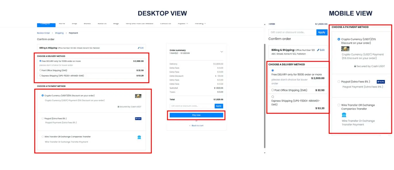 · Select a payment option and choose Pay Now to finalize your order; orders are not confirmed without this step.